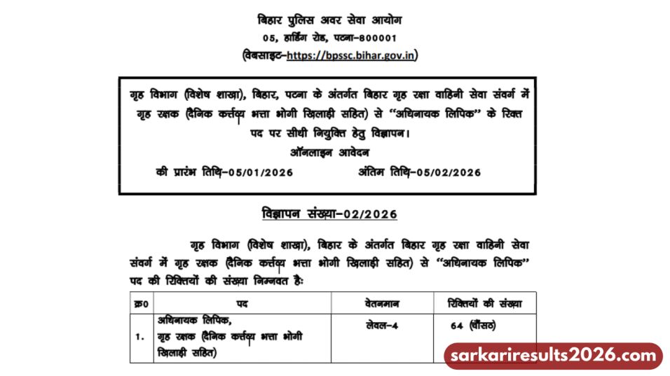 The Bihar Police Subordinate Service Commission (BPSSC) has officially released the BPSSC Home Guard Havildar Recruitment 2026 notification. This recruitment drive is a golden opportunity for candidates looking for a stable government job in Bihar Police with an attractive salary and allowances.