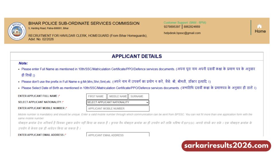 BPSSC Home Guard Havildar Recruitment 2026 Apply Process